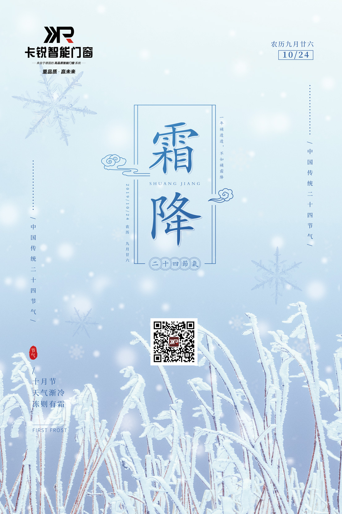 霜降時節是秋冬氣候的轉折點,也是陽氣由收到藏的過渡,大家應注意:天冷多添衣,飲食要合理,應適當多吃高蛋白食物,還要適當參加一些有益身心的娛樂活動。